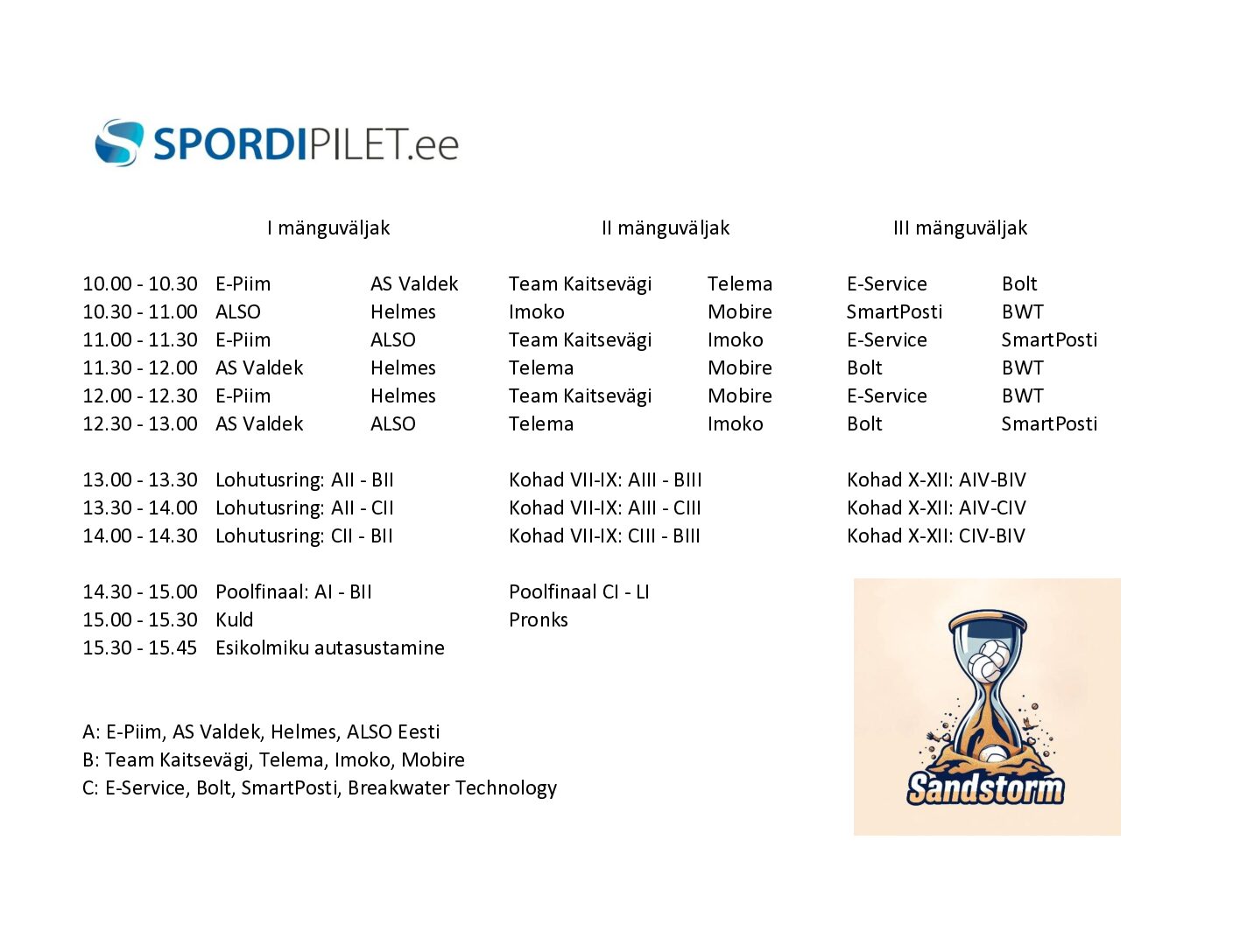 1. Sandstorm 29.11.2025 ajakava